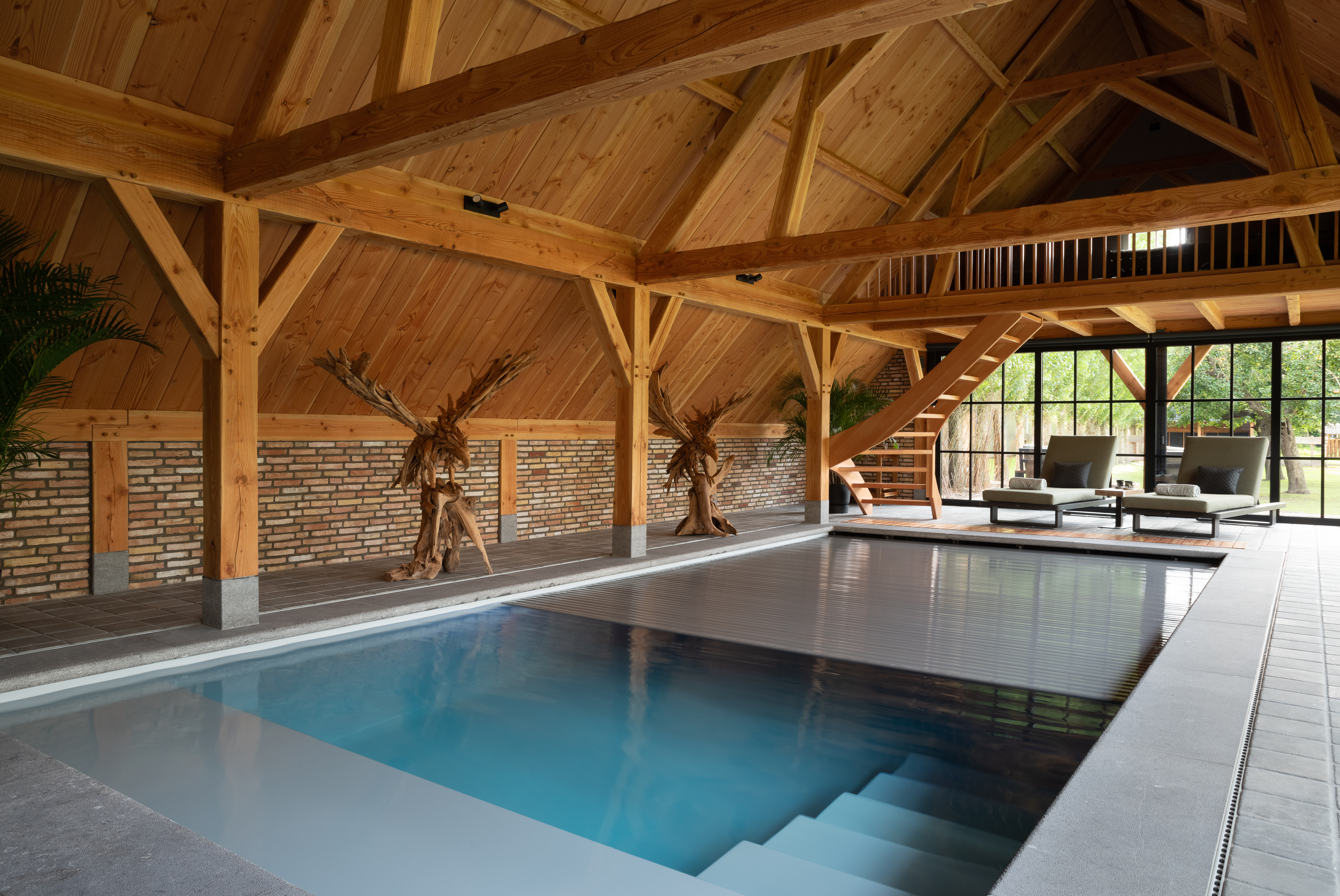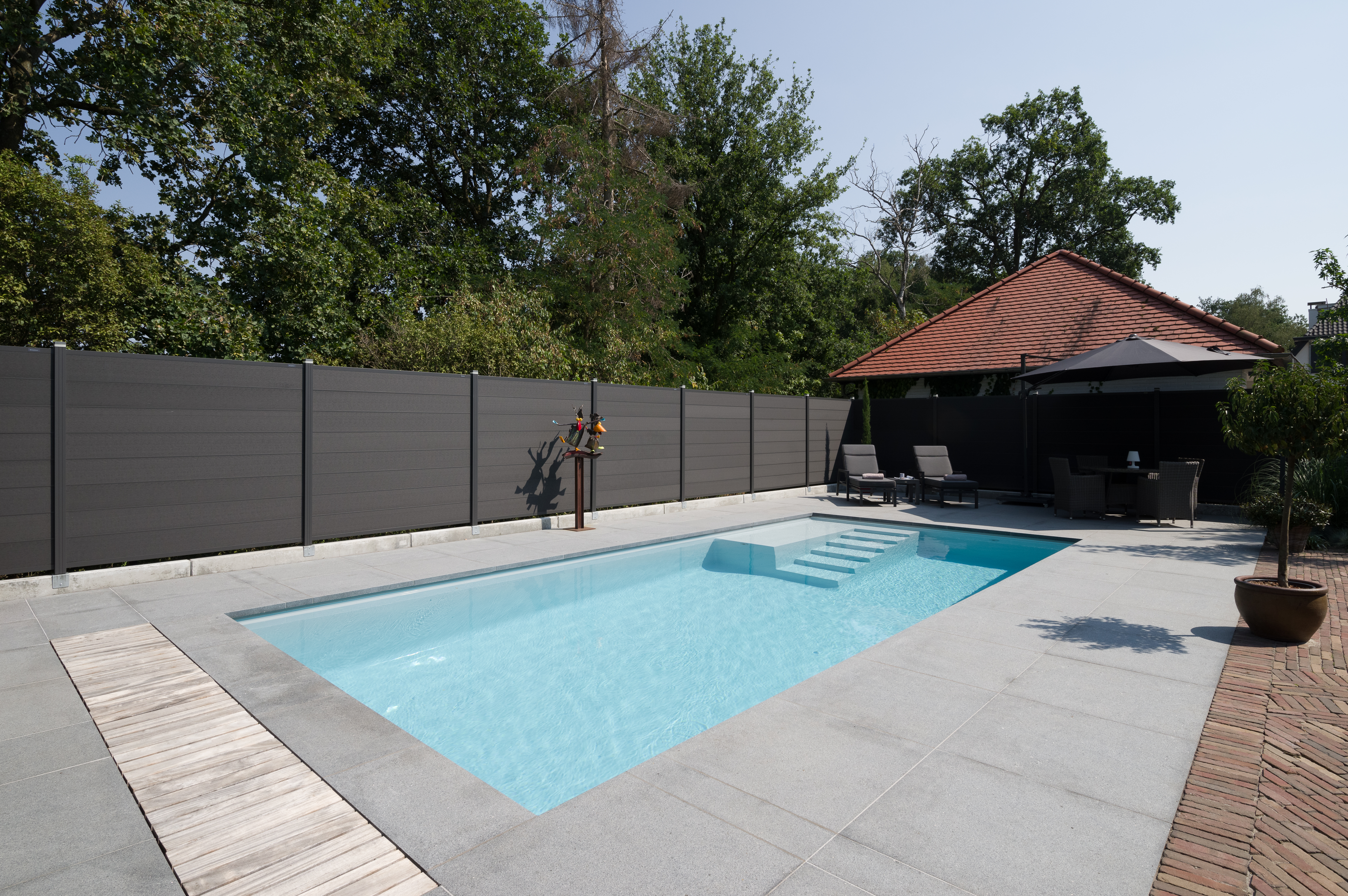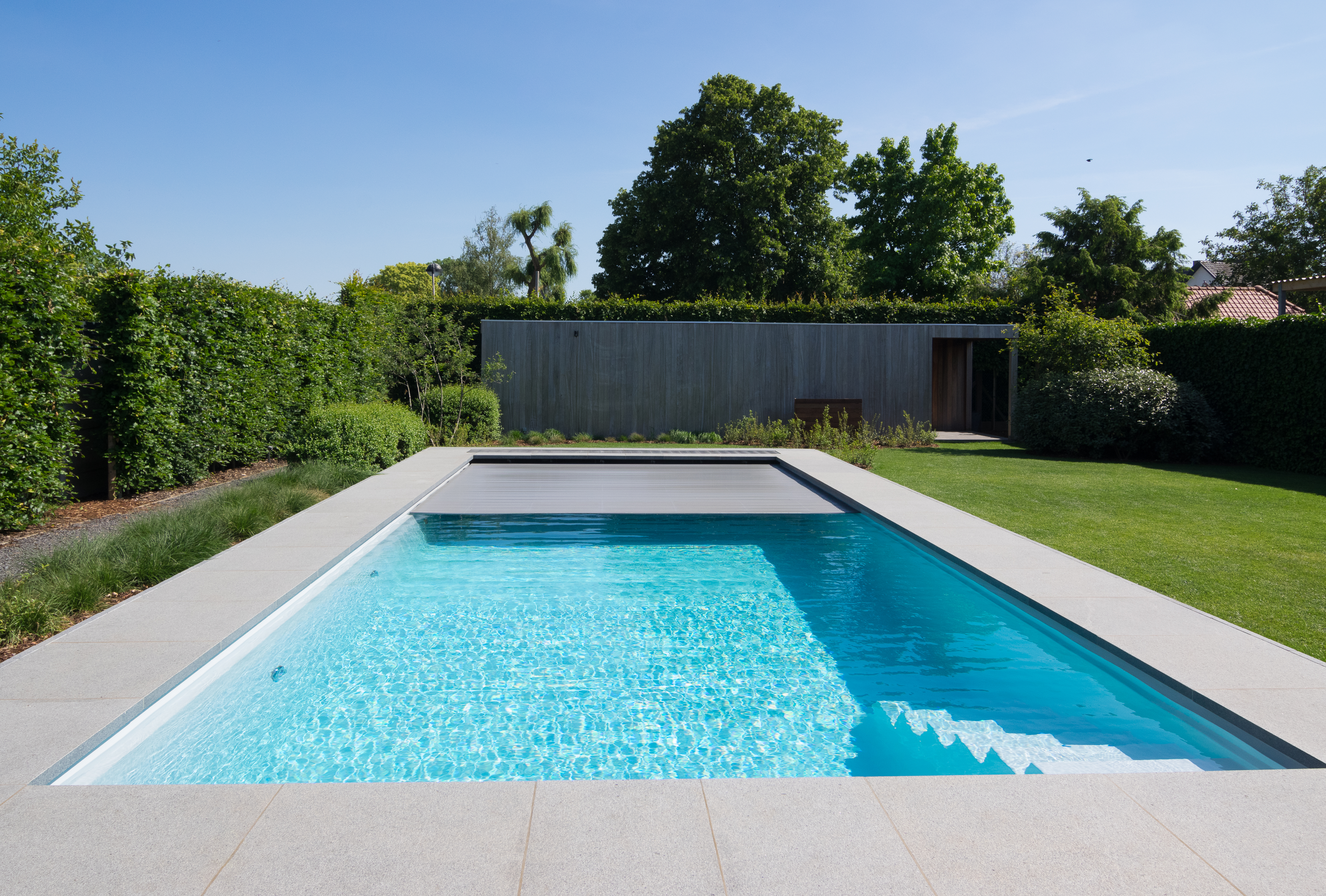 bouwkundig zwembad met lamellen