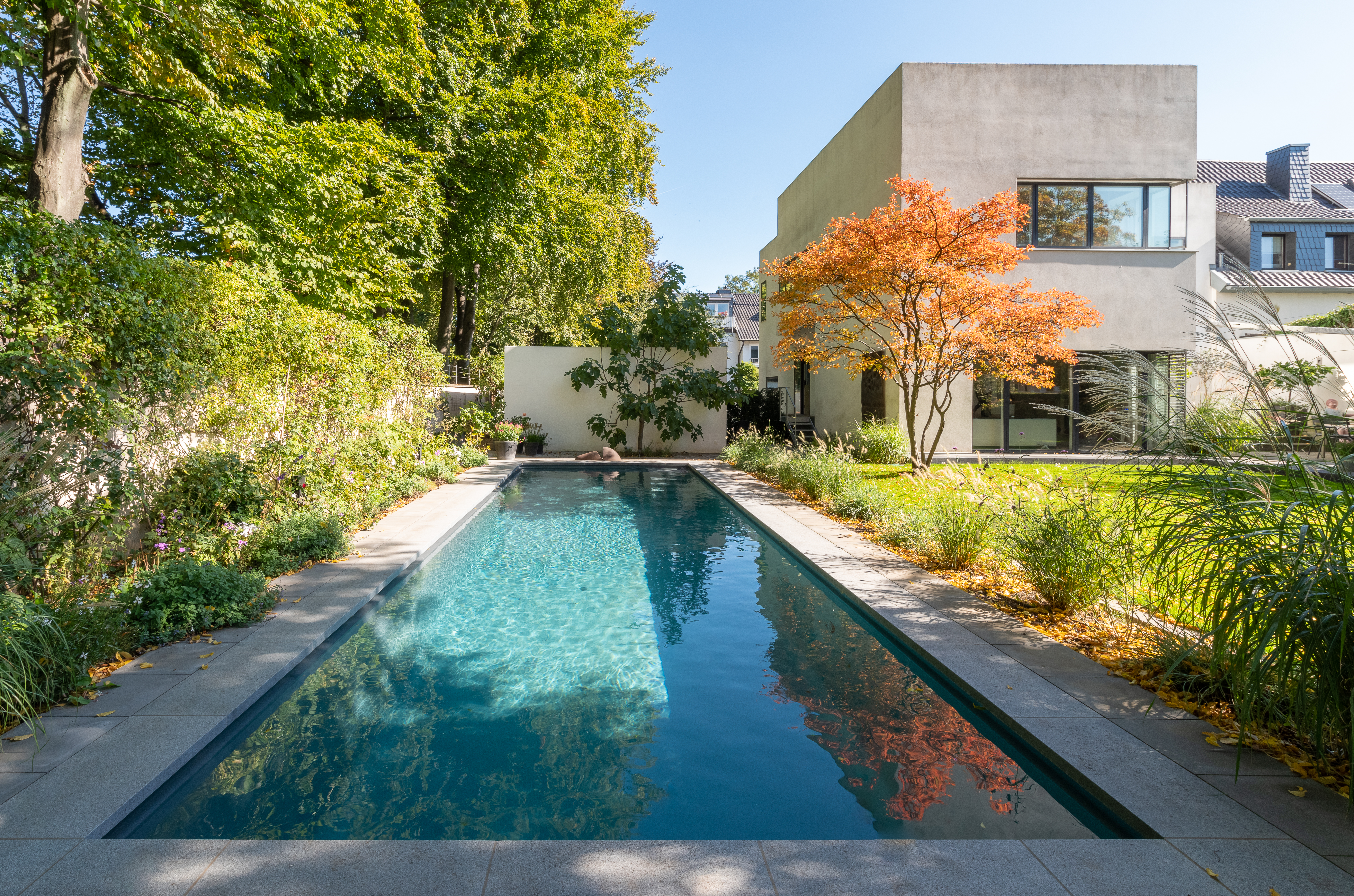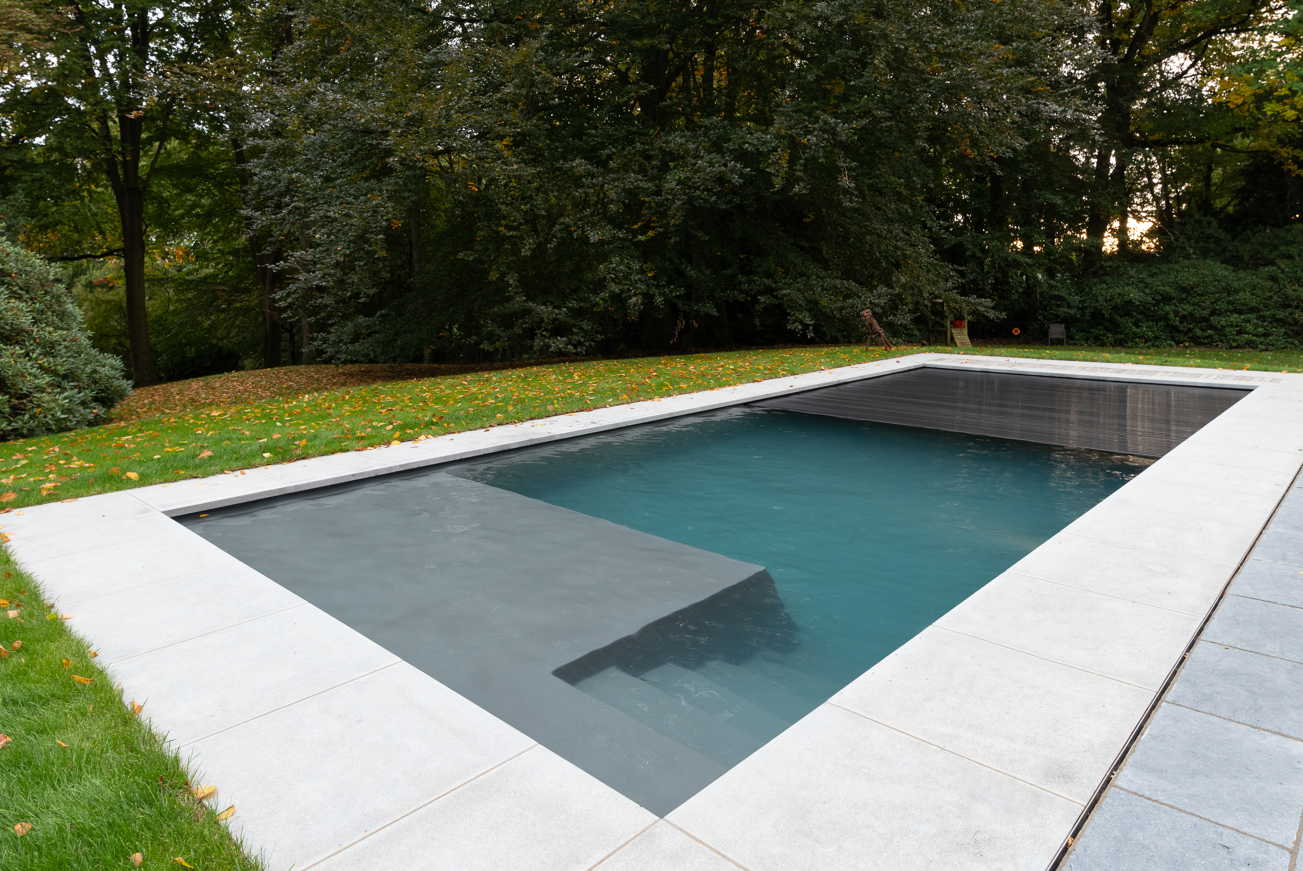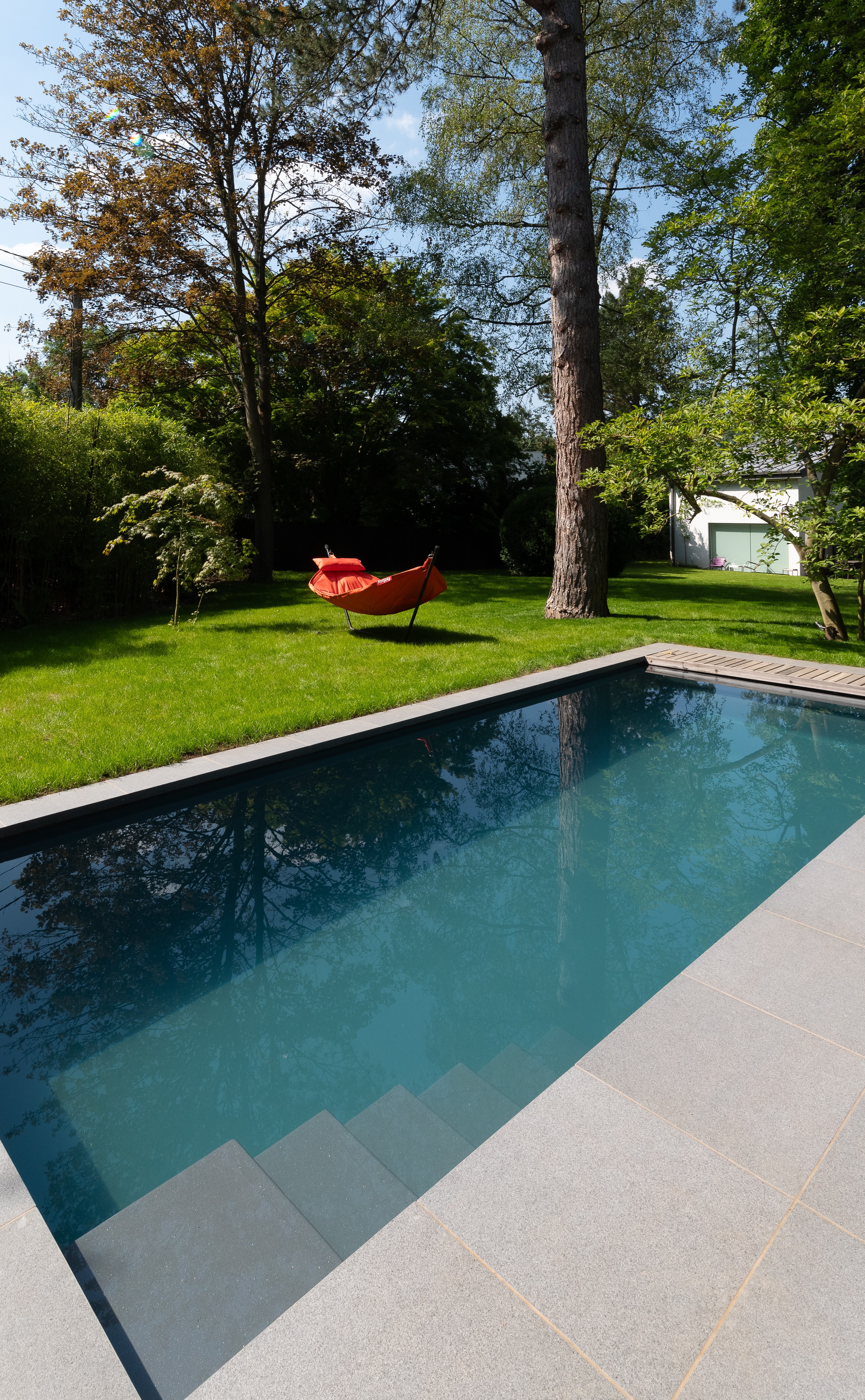 bouwkundig zwembad met lamellen